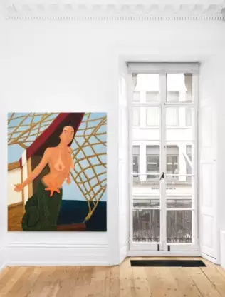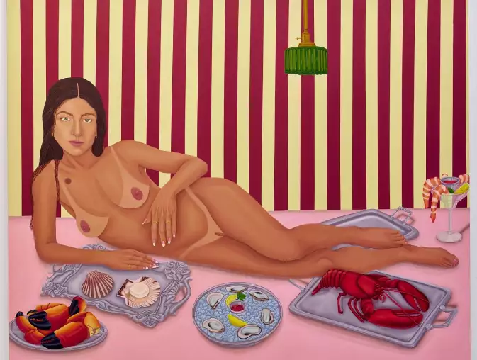 Scout Zabinski: Being a part of this show is surreal for me because my work is installed next to artists who have inspired me since I was a teenager. I still remember seeing Sarah Lucas‘ exhibition “Au Naturel” at the New Museum in New York and being captivated by her. In fact, the first nude self-portrait I ever made was maybe subconsciously inspired by her. It was a painting of me in my kitchen frying an egg on the stove with a paper bag over my head. So being in a show with her, Tracey Emin, and Cecily Brown is an absolute honor. So much of who I am as an artist is rooted in my Italian heritage and memories of traveling to Italy, so the site holds personal significance as well.