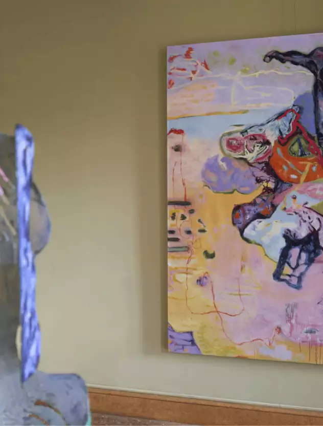 Sarah Dwyer: I am interested in where the familiar meets the extraordinary. I see humour in that tension— the smirk of the ridiculous just below the surface of banality. I allow surprise appendages and other suggestive forms to appear in my work, often mischievously camouflaged. For me, painting is where the physical meets the illusionary- it’s a space for play and crossover, where the knowing and the unknowing live side by side. There’s room for a spot of subversion.